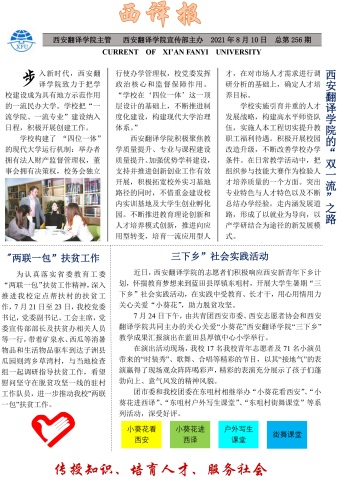 Word图文混排中,以西安翻译学院的志愿者们积极响应西安新青年下乡计划,怀揣教育梦想来到蓝田县厚镇东咀村,开展大学生暑期“三下乡”社会实践活动,在实践中受教育、长才干,用心用情用力关心关爱“小葵花”,助力脱贫攻坚为主题设计海报。
