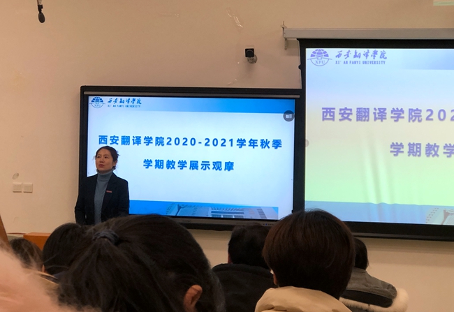 为深入贯彻落实全国教育大会精神,推进教育信息化,提高我校“双一流”建设水平,推进五大“金课”建设和信息化教学,充分发挥智慧教室在课堂教学改革中的作用,探索实施智能化的精准教育,有效开展信息化课程教学改革,2021年1月6日上午,西安翻译学院开展2020-2021学年秋季学期教学展示观摩活动。副校长兼教务长齐玉水、教务处处长秦晓梅等领导出席观摩活动并讲话。各二级学院(部)分管教学工作的院长、教学管理人员及全体专职教师(含校内兼职教师)参加。活动由教务处处长秦晓梅主持。