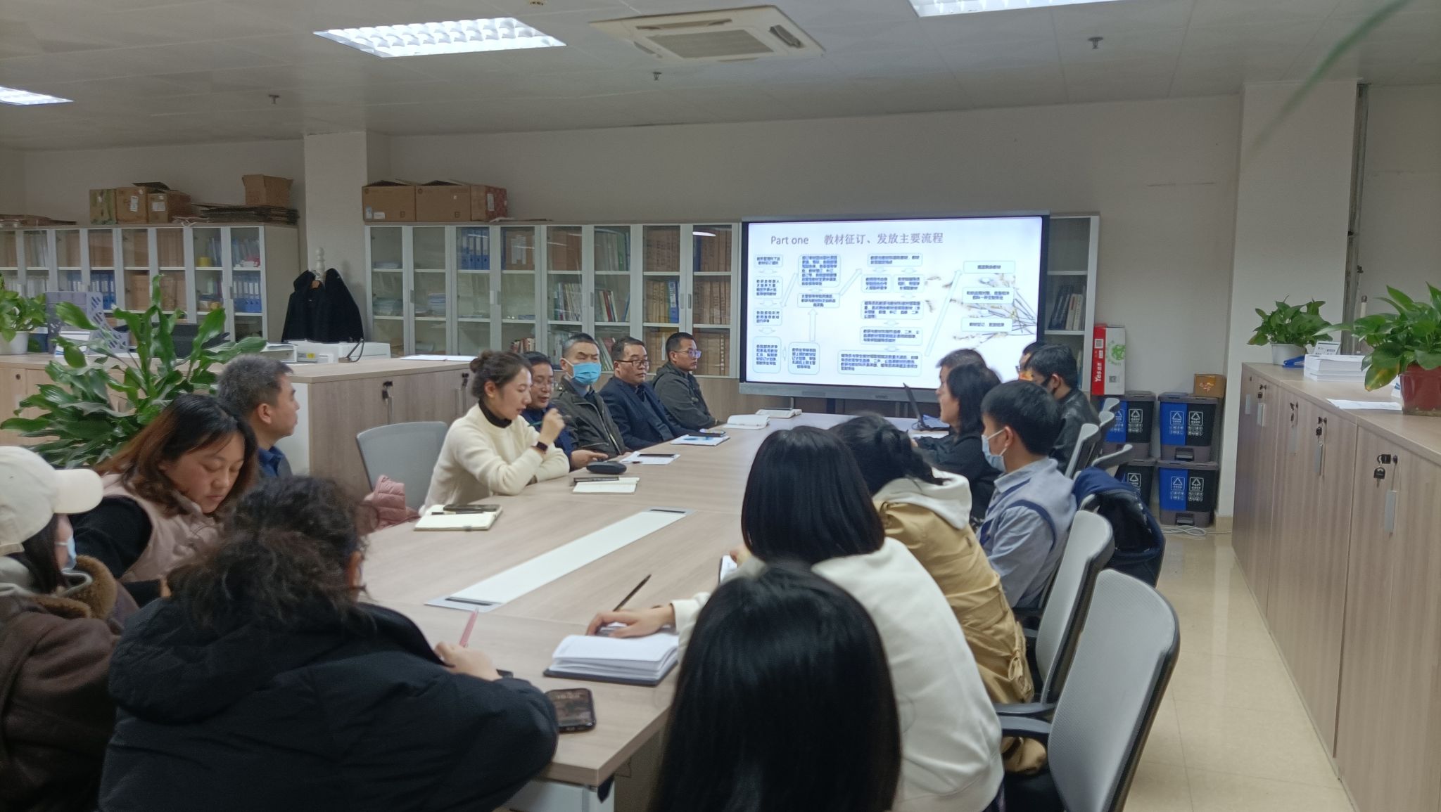 刘老师从教材征订发放流程、工作内容、异动结算流程及结算案例等方面进行了陈述,并以自身工作实际总结了教材管理工作中的问题及设想。接着,大家针对目前教材征订、发放管理工作过程中存在的问题展开了激烈讨论,就优化教材征订、发放流程提出诸多可行性改进意见。