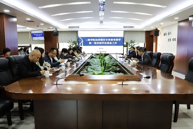 为确保我校审核评估工作有序推进,4月6日下午,副校长武忠远作题为《二级学院如何做好审核评估准备工作》专题报告。各二级学院主管教学工作的副院长,各系主任,综合办主任、副主任以及教务处全体人员参加会议。教务处处长秦晓梅主持会议。