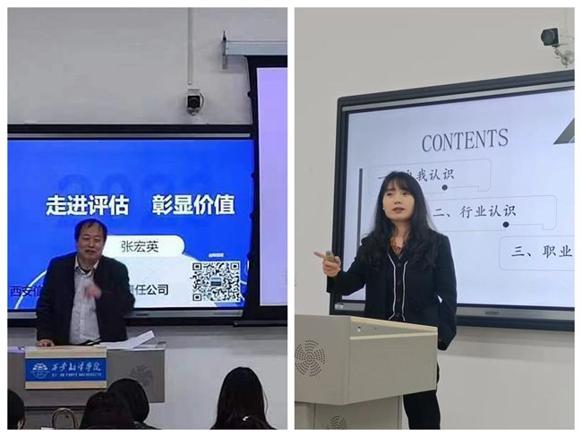 西安信通资产评估有限责任公司首席评估师张宏英老师受邀为同学作“走进评估 彰显价值”主题讲座。张老师在讲座中介绍了资产评估行业前景,指明了资产评估师职业的发展路径,鼓励同学们努力学习,争取早日考取资产评估师资格证书,拓展就业面。