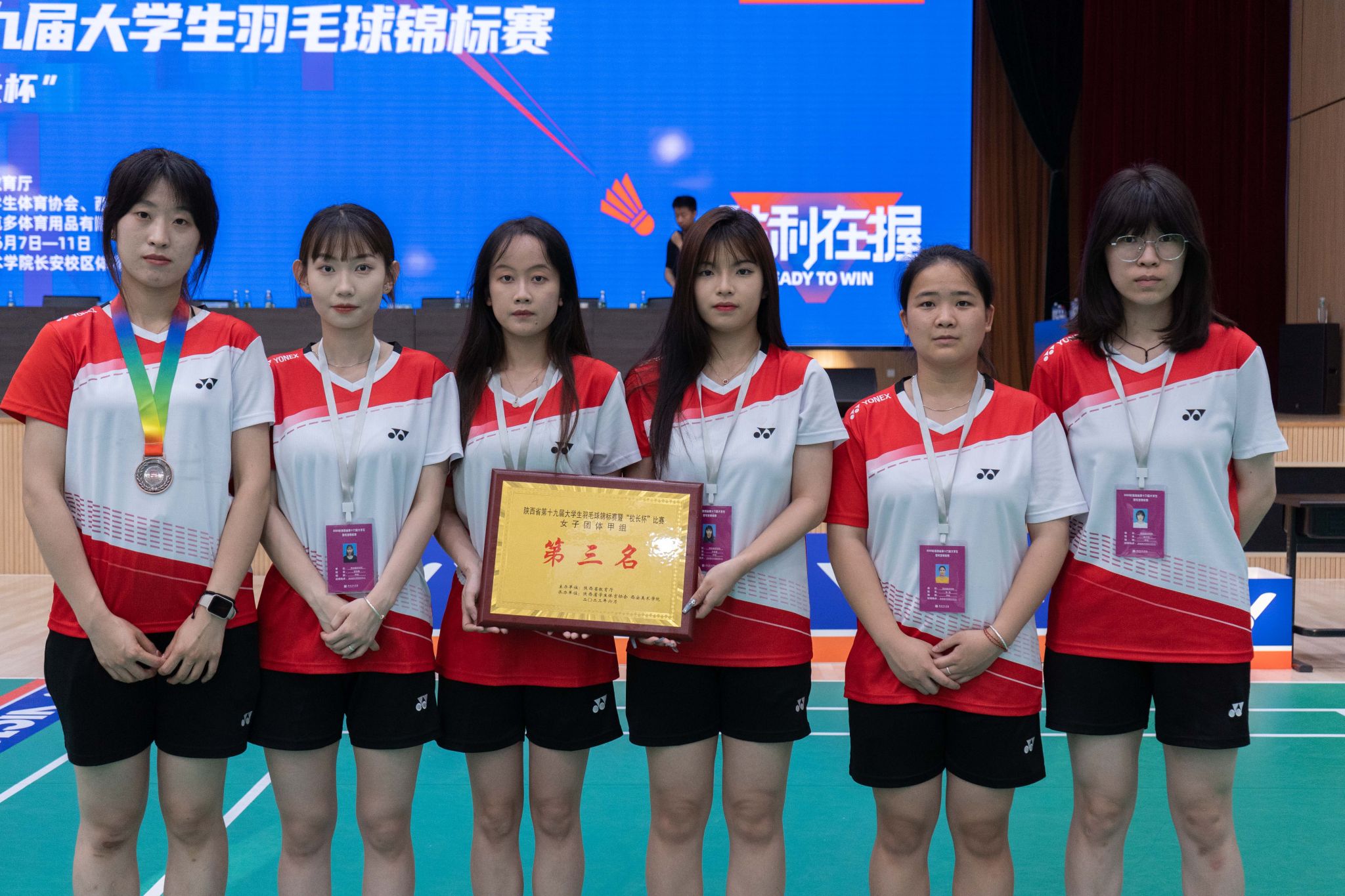 近日,由陕西省教育厅主办,陕西省学生体育协会、西安美术学院承办的陕西省第十九届大学生羽毛球锦标赛暨“校长杯”比赛在西安美术学院举办。西译代表队共派出12名队员参赛,由领队温博、教练员武陈老师带队。最终,我校喜获甲组女子团体第三名,选手贠心怡荣获甲组女子单打第三名,选手苗佳曦、朱孝孝荣获优秀运动员称号,武陈荣获优秀教练员称号。