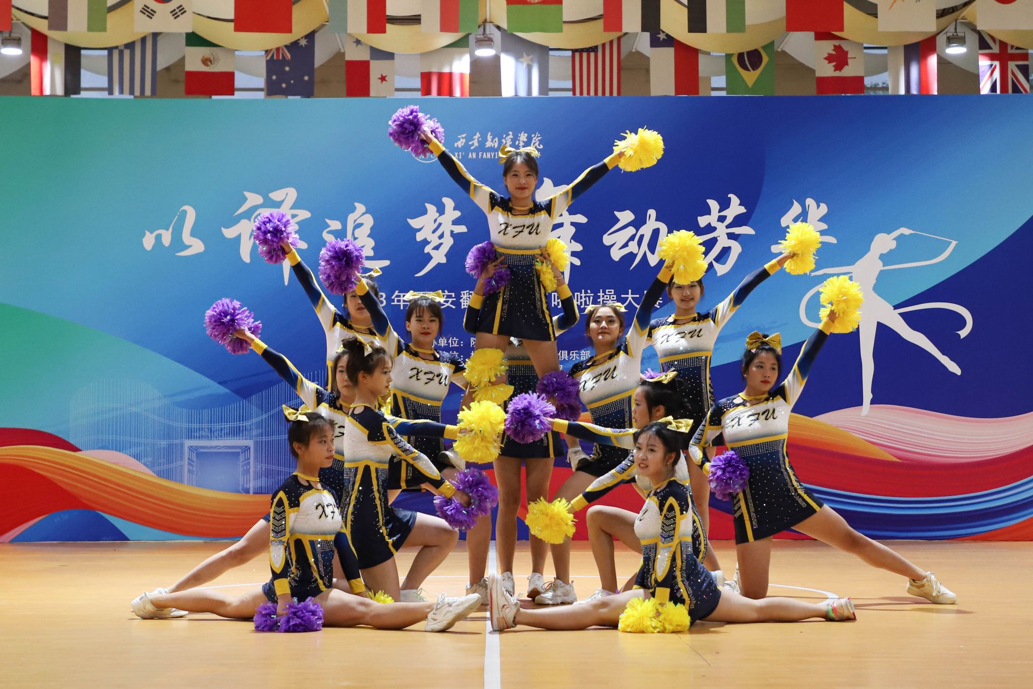 本次比赛共有来自各二级学院的十三支参赛队伍参加。在啦啦操队员们热烈的开场舞后,裁判员及运动员代表宣誓,大赛正式拉开帷幕。来自艺术与设计学院的“花火队”随着节拍迈着轻盈的步伐,身姿律动、活力动感的舞姿给在场观众留下深刻印象,表演者们踏着轻快的步伐,精彩的表演让大家眼前一亮,整齐划一的动作与振奋人心的音乐完美融合,将现场的气氛推向高潮。英文学院队伍“China-X队”的参赛者们配合默契,精心编排的动作与动感十足的音乐相得益彰,热情与汗水挥洒在灯火之下,展现出英文学院学子独特的艺术魅力与出色的舞台表现,完美诠释了本次大赛“以译追梦,舞动芳华”的中心主题,体现了西译学子朝气蓬勃、锐意进取、积极向上的精神风貌。亚欧语言文化学院代表的“A队”队员们身着统一服装,手持花球,迈着自信的步伐登场,脸上洋溢着笑容,动作整齐有力、干净利落,用炙热的青春编织着独属于他们的浪漫。