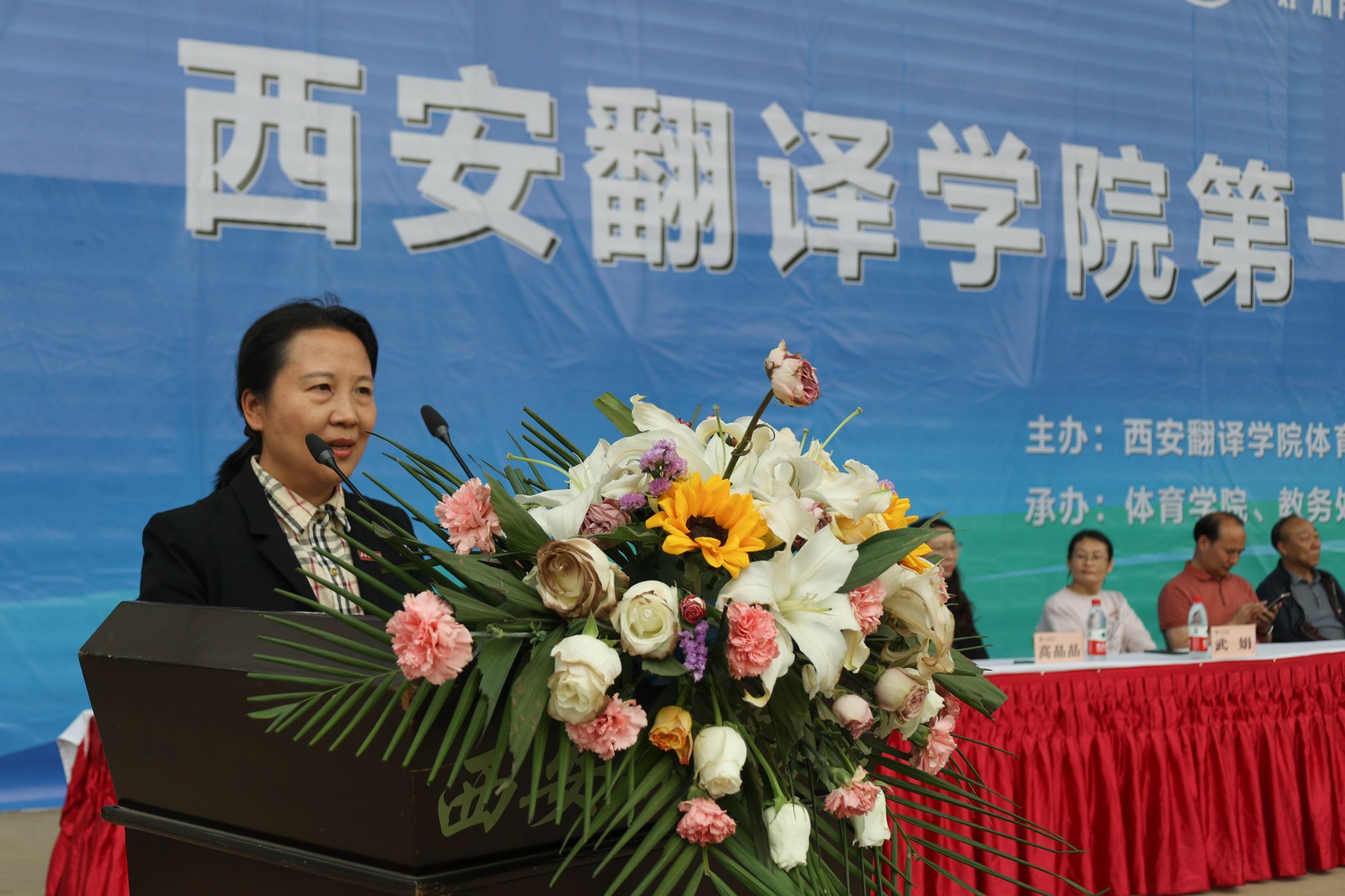 4月20日下午,西安翻译学院第十六届运动会圆满落幕。校长崔智林,副校长武忠远,副校长王霖,校党委副书记、工会主席王小惠,校党委副书记、副校长张恒,副校长王利晓出席。我校相关职能处室负责人、各二级学院师生参加闭幕式。闭幕式由教务处处长秦晓梅主持。