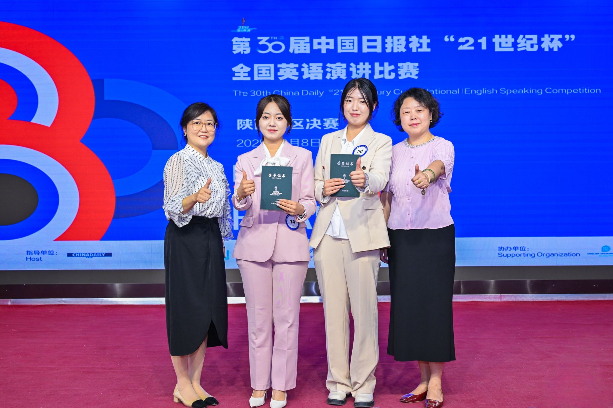 6月8日,第30届中国日报社“21世纪杯”全国英语演讲比赛陕西地区决赛圆满落幕。我校英文学院翻译专业2023级学生陈可、2022级英语专业学生霍昕玥凭借扎实的语言功底、敏捷的应变能力和自信的表达,摘得省赛二等奖,三等奖各一项。同时,陈可同学将与已获国赛资格的2023级英语专业徐子晴同学共同参加10月举行的全国半决赛,这也是我校历史以来进入国赛人数最多的一次。