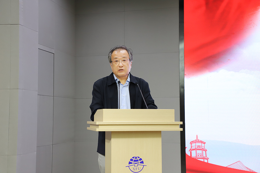 崔智林上台讲话,他表示,本次活动旨在为学生搭建党史学习的交流平台,契合了“学四史”教育内涵,对我校强化办学理念、提高教学质量、打造德育特色具有重要意义。崔智林呼吁全体师生铭记历史,加强党史学习,通过培养当代大学生的独立思辨能力与团队协作意识,发扬老一辈革命家的光荣传统,并希望西译学子以此为契机增强历史使命感与责任感,进一步推动师生厚植爱党爱国情怀。