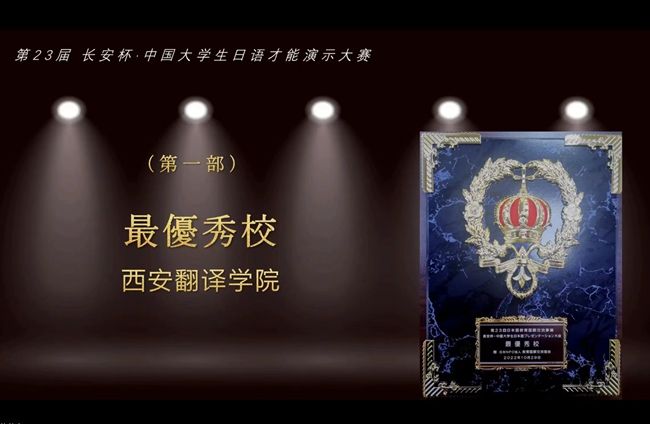10月29日,由中日人文交流大学联盟、中国日语教学研究会、西安外国语大学主办的“第23届长安杯・中国大学生日语才能演示大赛”成功举办,来自省内外的十八所高校参加了此次大赛。我校日语专业2020级肖雯文获得一等奖及“特别奖・京都市长奖”,2020级李坤同学获得二等奖。西安翻译学院获得“最优秀学校”荣誉。