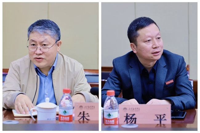 护理与康复学院院长朱勇(左)与副院长兼卫生所所长杨平(右)分别介绍了学院及卫生所情况