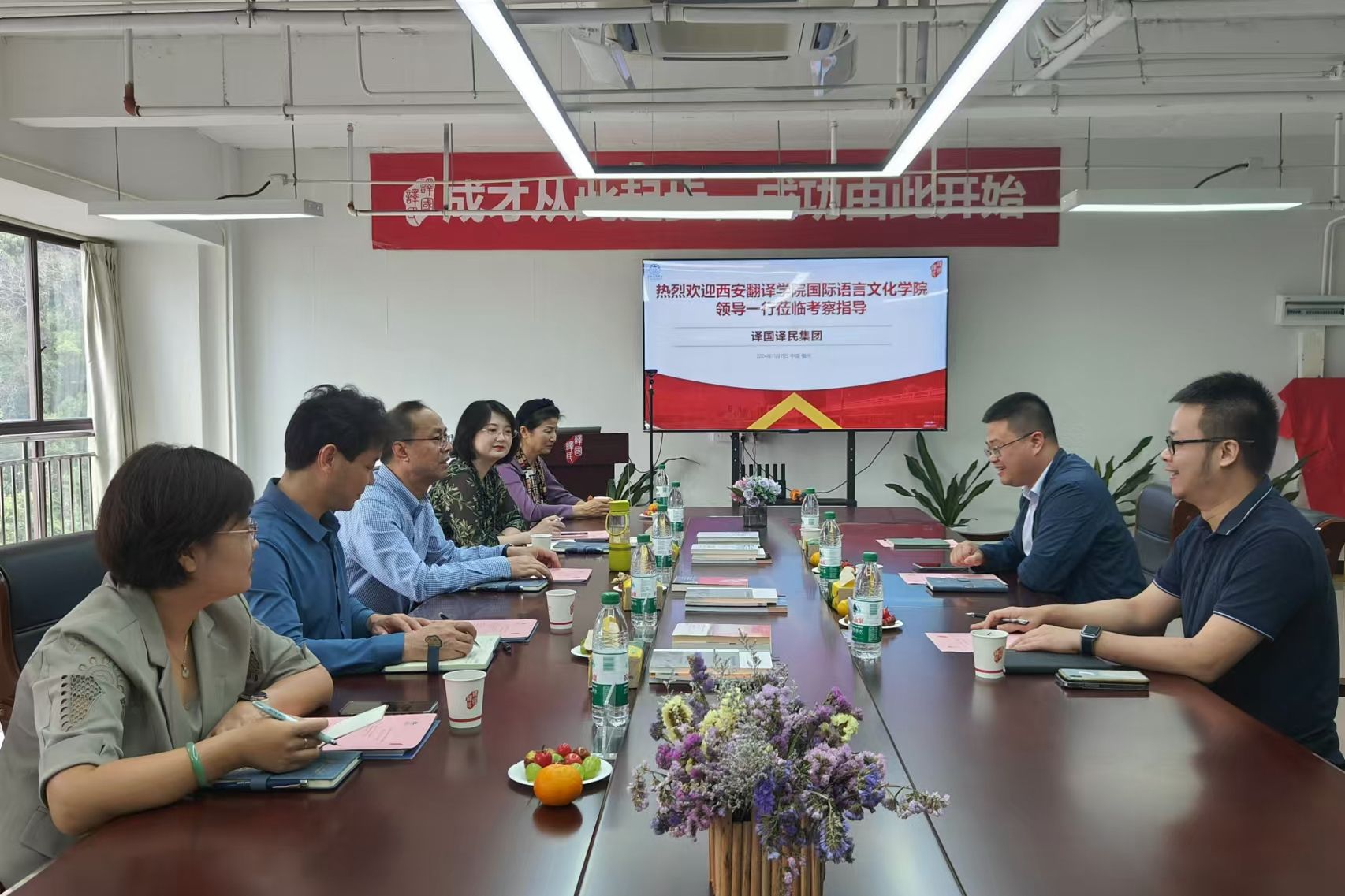 译国译民集团是我校的校企合作单位,始创于2003年,总部位于福州,在北京、上海、深圳、武汉、济南、西安等多个城市设有公司,拥有诺贝笔、译道、译学家、问才、译语康等多个子品牌集团。是中国翻译协会理事单位(TAC)、美国翻译协会会员单位 (ATA),首批全国翻译专业学位研究生教育实习基地。其集团理事长林世宋、西部公司总经理吴强、储备干部雍莉热情接待了我校调研团队。座谈会中,双方就师资团队建设与发展、学生实习与就业、专业与课程共建等方面达成了合作共识,并签订了2025届本科毕业生毕业实习合同。