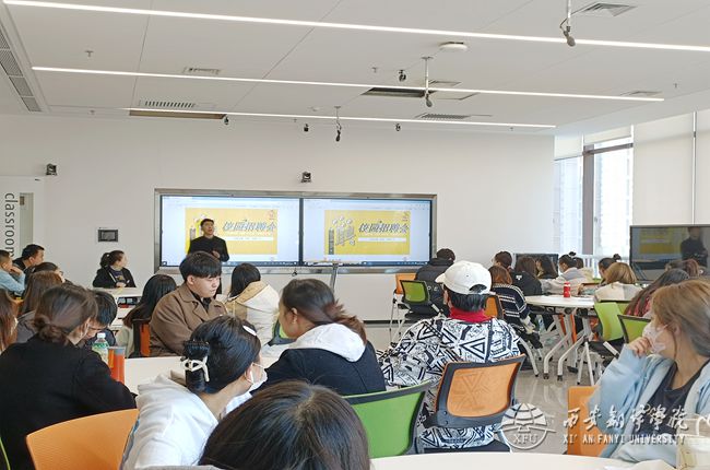 接着,徐隽文进行招聘宣讲。他对亦帆传媒有限公司的属性、招聘岗位、薪资待遇及工作环境等情况分别做了介绍,并带领参会同学到公司进行参观考察,让大家实地感受企业的文化及工作氛围。