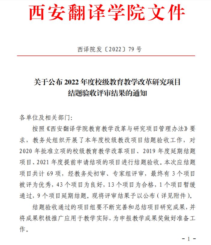 关于公布2022年度校级教育教学改革研究项目 结题验收评审结果的通知