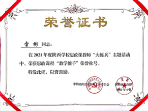 (2)2021年度陕西学校思政课教师“大练兵”教学能手称号---雷彬